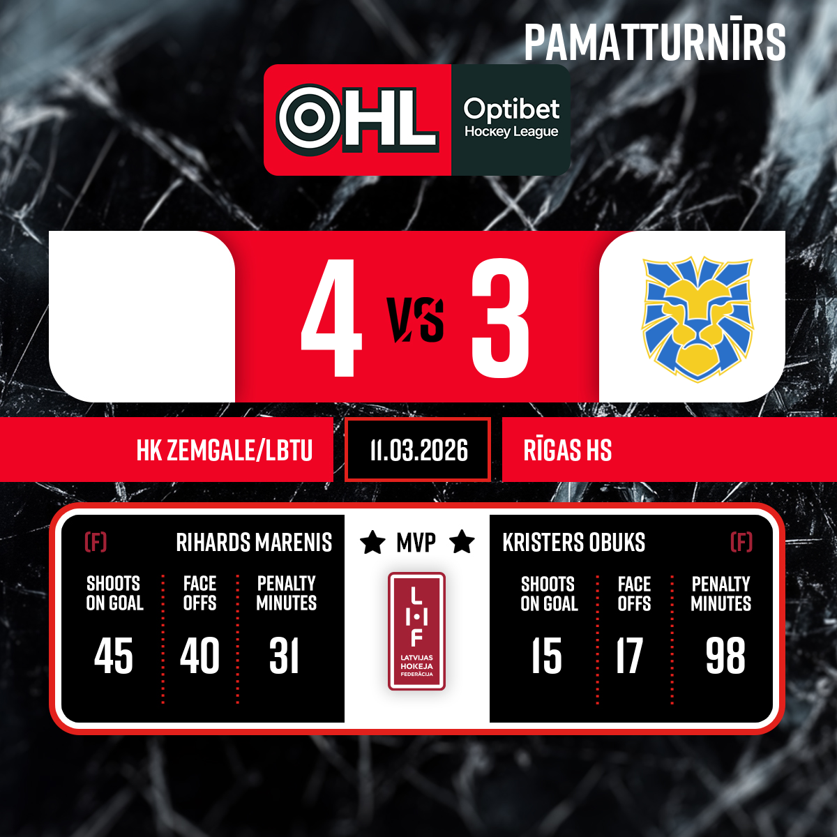 Vārti#29 Rihards MARENISPiespēles: #9 Gatis GRICINSKIS, #88 Daniels GORŠANOVS - 31:232.P