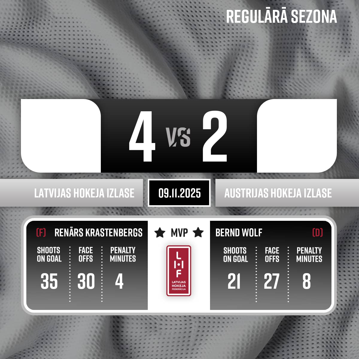 Vārti, tukšos vārtos#9 Renārs KRASTENBERGSPiespēles: #16 Kaspars DAUGAVIŅŠ, #73 Deniss SMIRNOVS - 59:023.P
