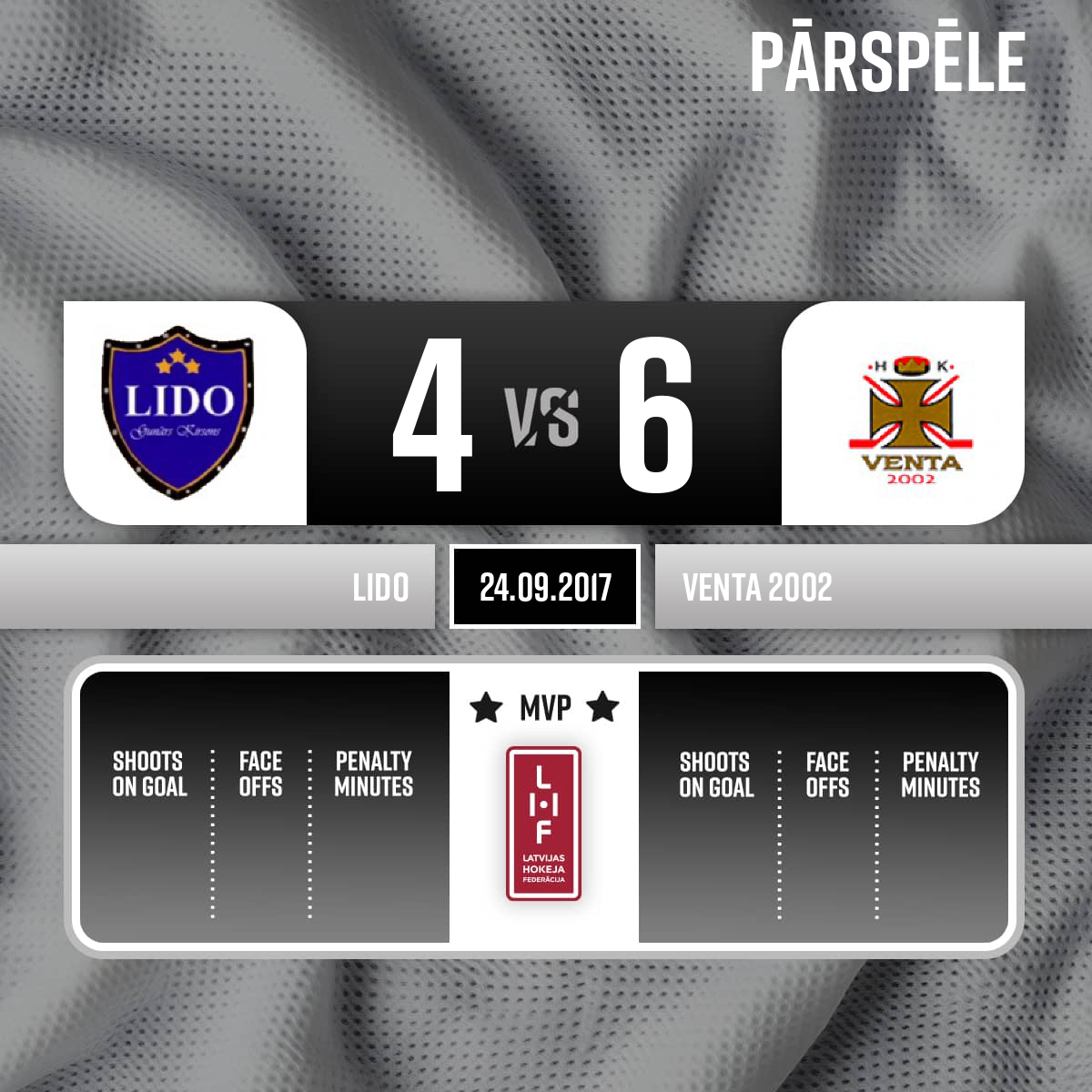 Noraidījums - 2 minūtesBīstama spēle ar augstu paceltu nūju, #23 Ralfs JEVDOKIMOVS - 00:001.PSpēles tiesneši: Galvenais tiesnesis- Andrejs Kudrjašovs, līnijtiesneši- Oļegs Kokins, Dāvis Zunde
