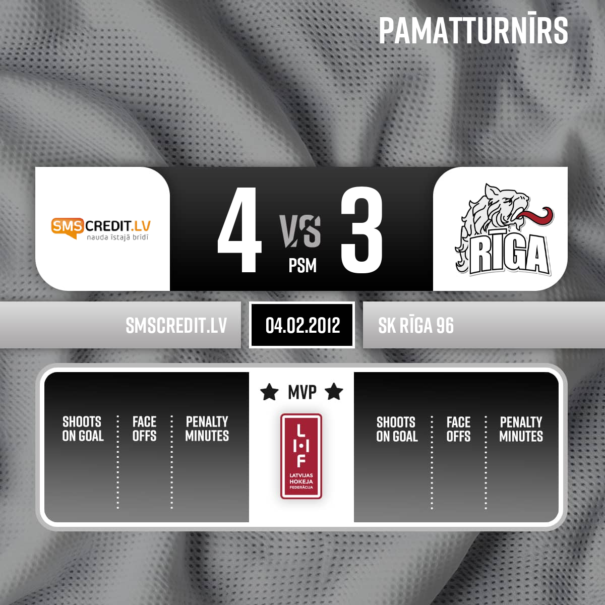 Noraidījums - 2 minūtesSitiens ar nūju, #28 Ģirts ZEMĪTIS - 56:003.PŠīs dienas spēli klātienē vēro 63 skatītāji