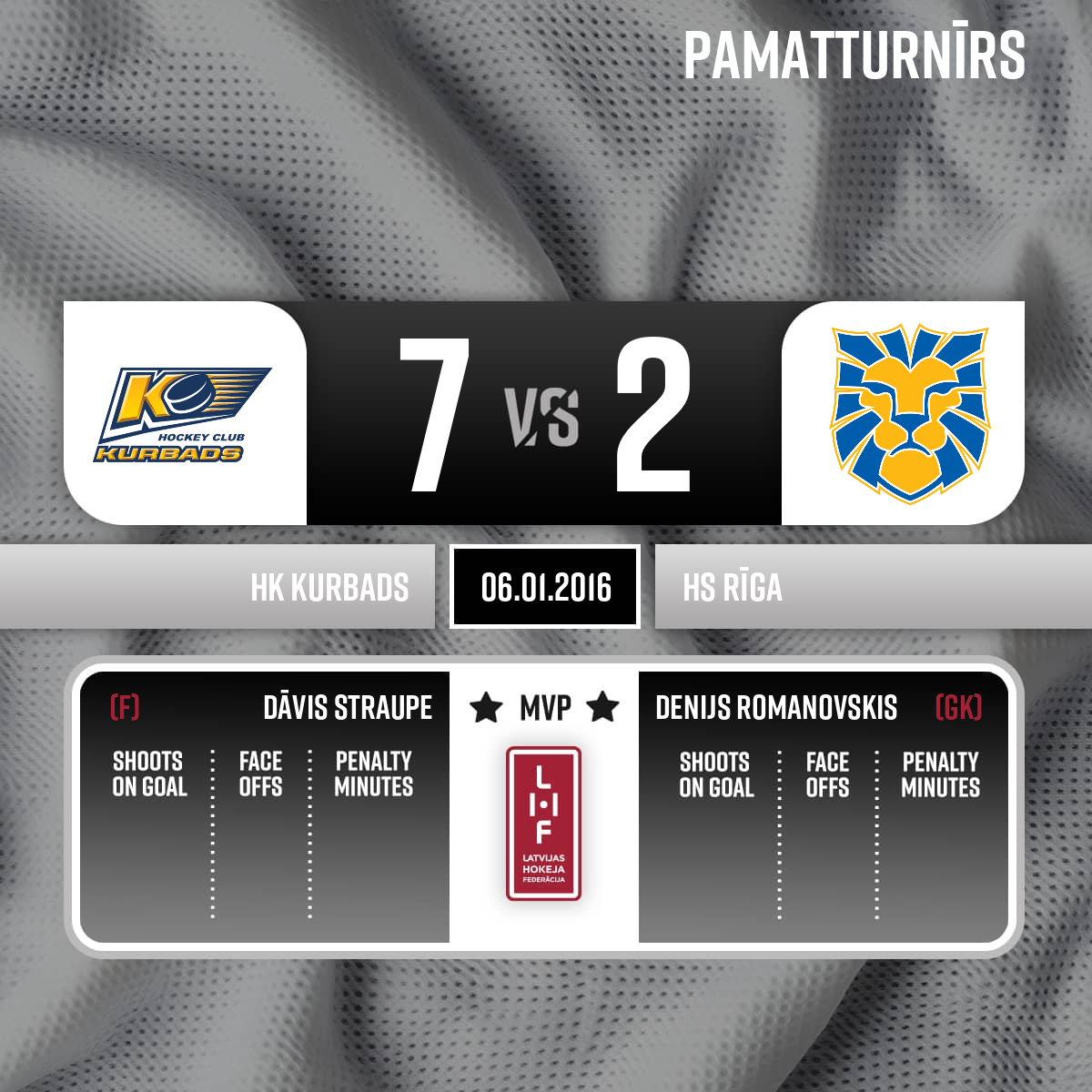 - 60:003.PSpēles labākie spēlētāji; HK Kurbads #9 Dāvis Straupe; HS Rīga #1 Denijs Romanovskis