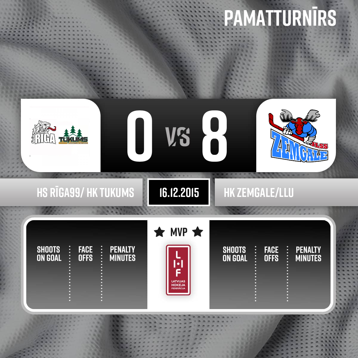 Noraidījums - 2 minūtesPretinieka turēšana, #83 Mārtiņš MEŽULIS - 00:001.PSpēles tiesneši- Galvenais tiesnesis- Juris Laicāns, Līnijtiesneši- Gatis Everts, Andrejs Jakovļevs