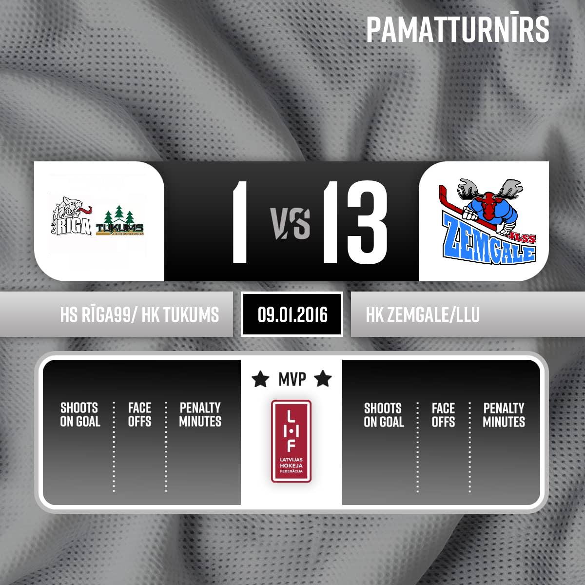 Vārti vairākumā#5 Jānis BULLĪTISPiespēles: #13 Artūrs BATRAKS, #4 Matīss GELAŽISvairākumā (+1) - 55:033.P