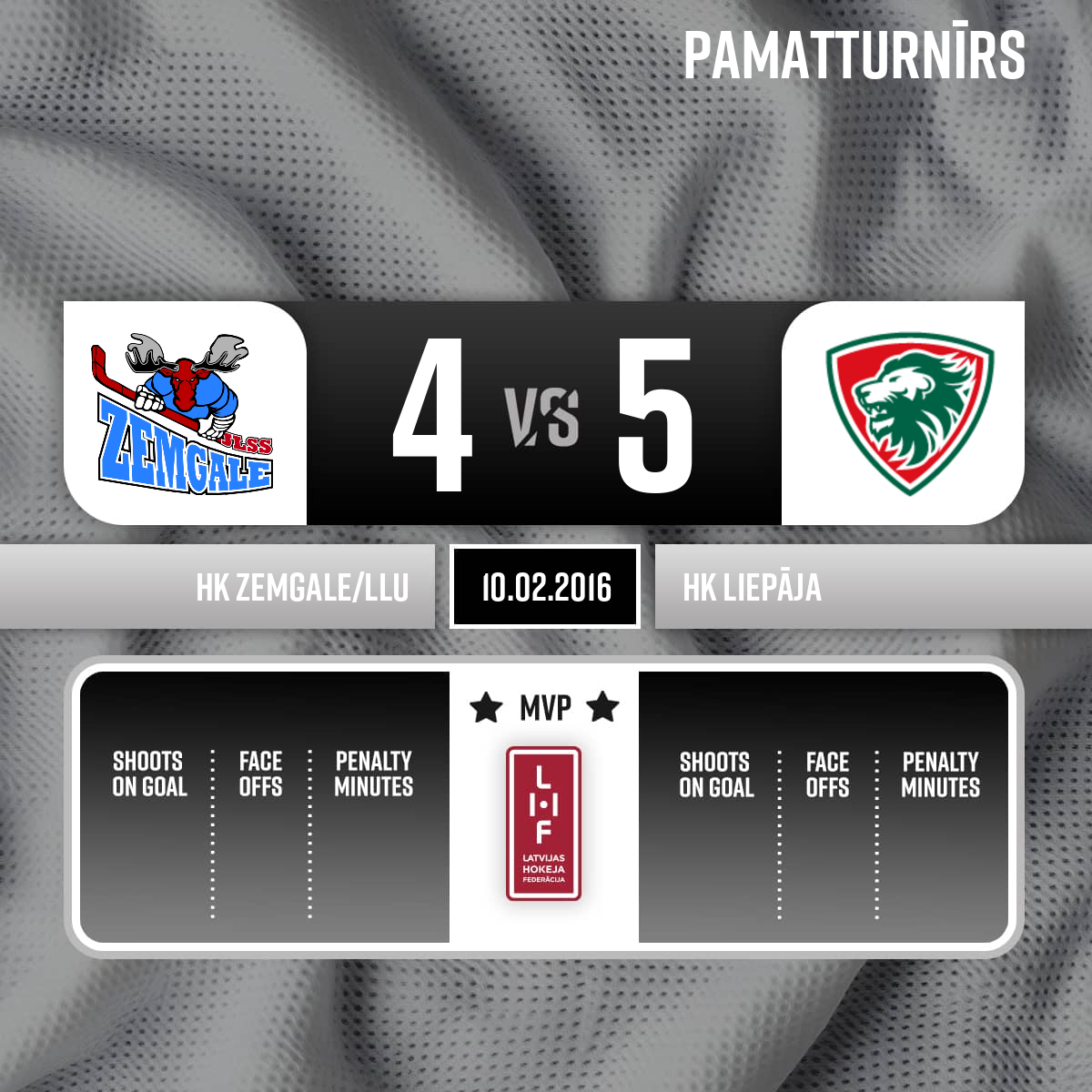 - 60:003.PSpēles labākie spēlētāji: HK Zemgale - #77 - Olafs Aploks un HK Liepāja - #53 - Kristers Freibergs "A"