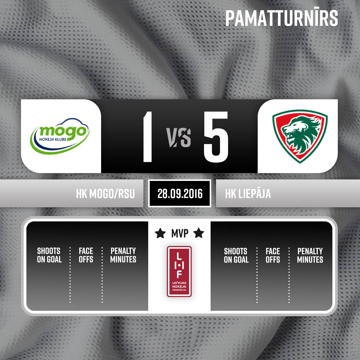 Noraidījums - 2 minūtesBloķēšana, #6 Kārlis LIEPIŅŠ - 00:001.PSpēles tiesneši; Galvenie tiesneši Andris Ansons un Jevgēnijs Griškevičs; līnijtiesneši Edvards Briedis un Krišs Kupčus
