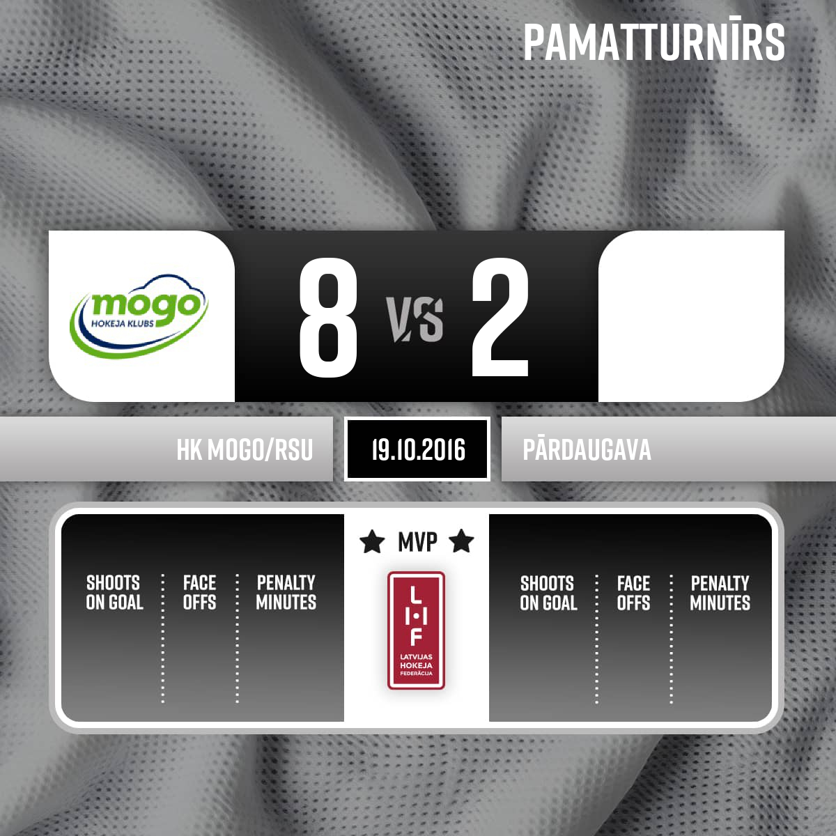 - 60:003.PSpēles labākie spēlētāji: HK Mogo #25 - Andrejs Smirnovs Pārdaugava #31 - Kaspars Dzierkals