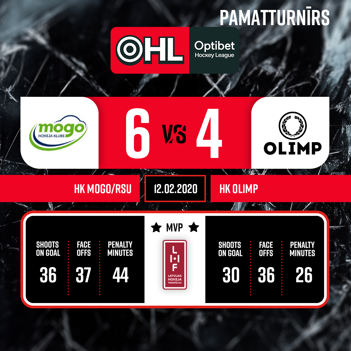 Spēles labākie spēlētāji: HK Mogo - #23 Jānis BULLĪTIS HK Olipm - #93 Edijs BRAHMANIS