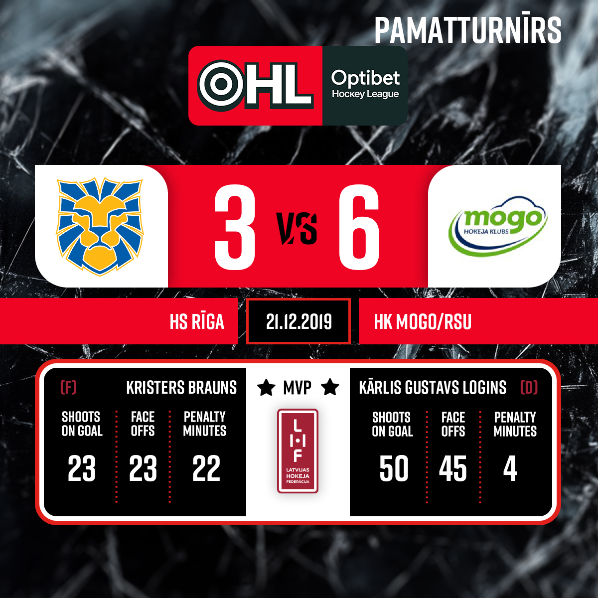 Spēles Labākie spēlētāji : HS Rīga - Kristers Brauns #15 HK Mogo - Kārlis Gustavs Logins #19