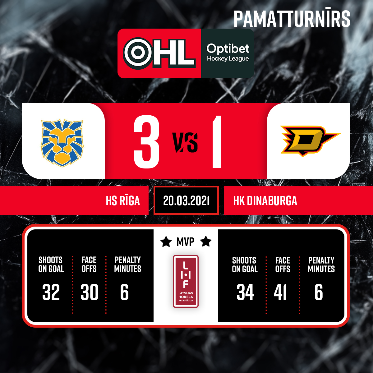 Labākais spēlētājs HS Rīga komandā nr. 30 Kārlis Mežsargs Labākais spēlētājs HK Dinaburga komandā nr. 5 Ernests Azarevičs