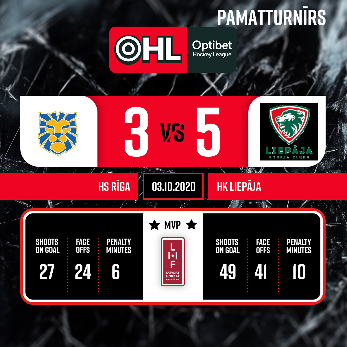 Spēles labākais spēlētājs komandā HS Rīga #23 PETROVIČS Roberts Spēles labākais spēlētājs komandā HK Liepāja #30 GLŪZDA Mārcis