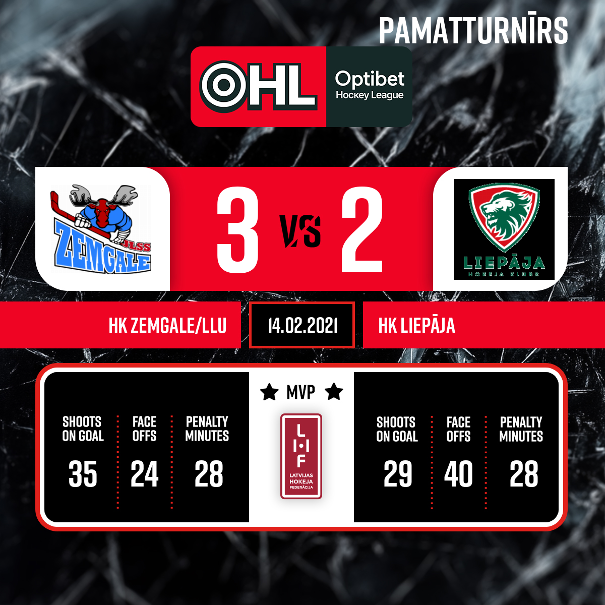 Spēles labākie spēlētāji - HK Zemgale/LLU- Nr 14 RAZGALS Frenks HK Liepāja – Nr 55 SALIJA Artūrs