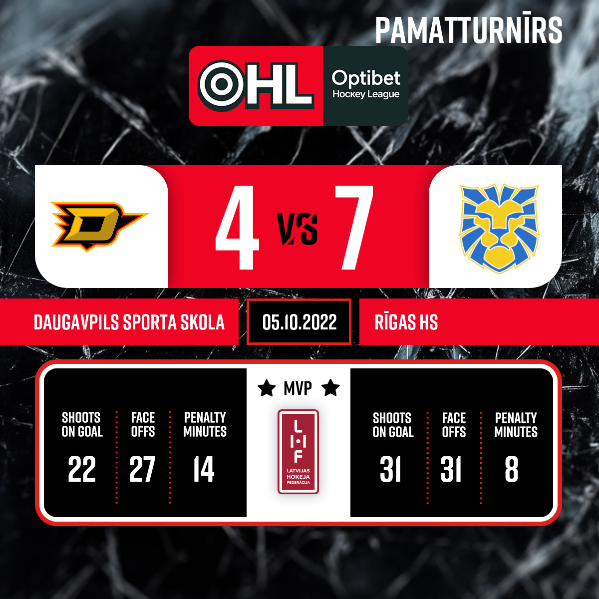 Spēles labākie spēlētāji: DLSS/Dinaburga - # 75. Ivo HARITONOVS, HS RĪGA - #39. Dmitrijs ĻEINS.