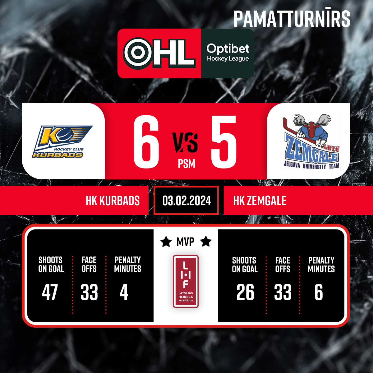 Spēles labākie spēlētāji: HK Kurbads - #72 Roberts JEKIMOVS HK Zemgale/LBTU - #72 Kevins STRĀDNIEKS