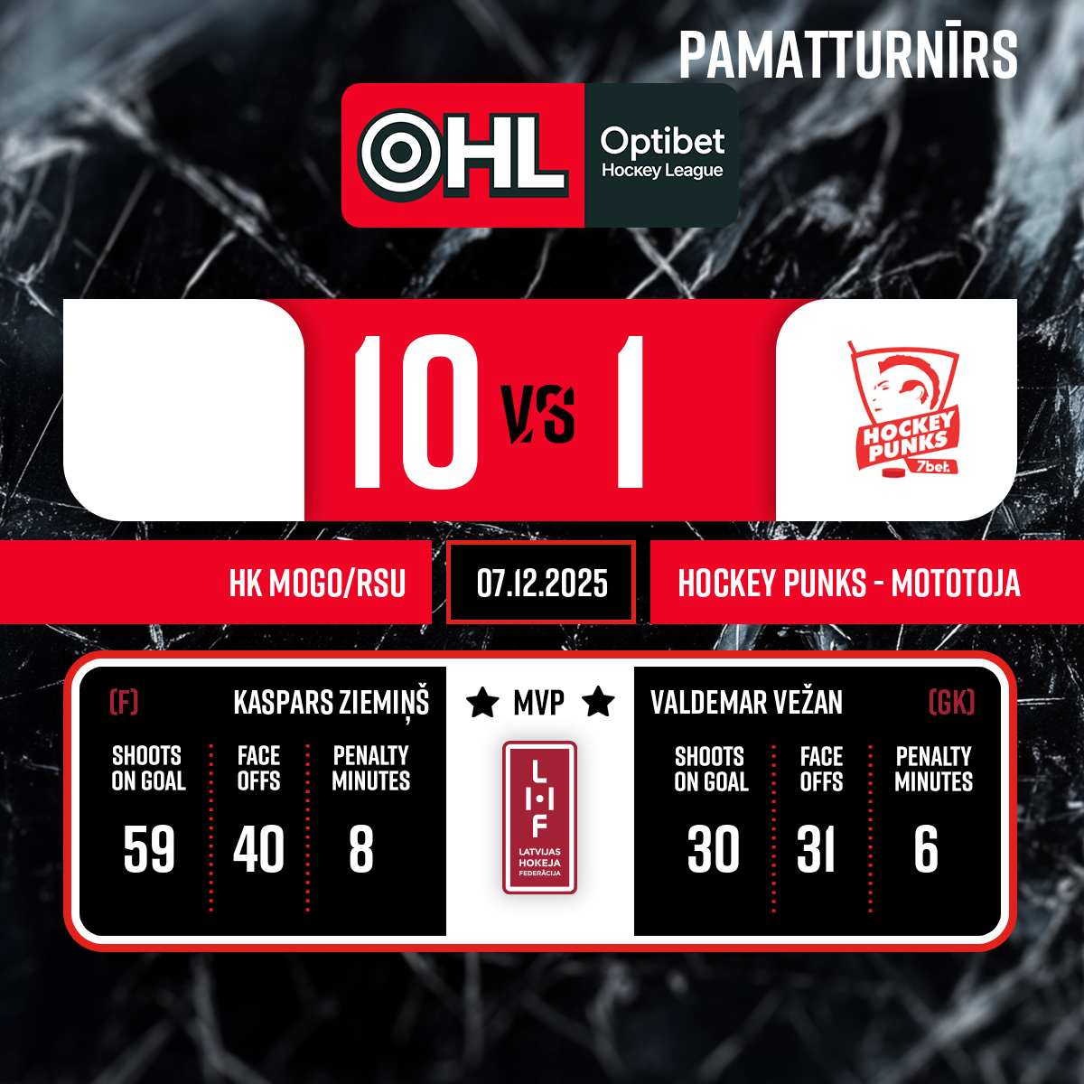 Piespēles: #69 Kaspars ZIEMIŅŠ, #71 Kristers URBANOVIČS