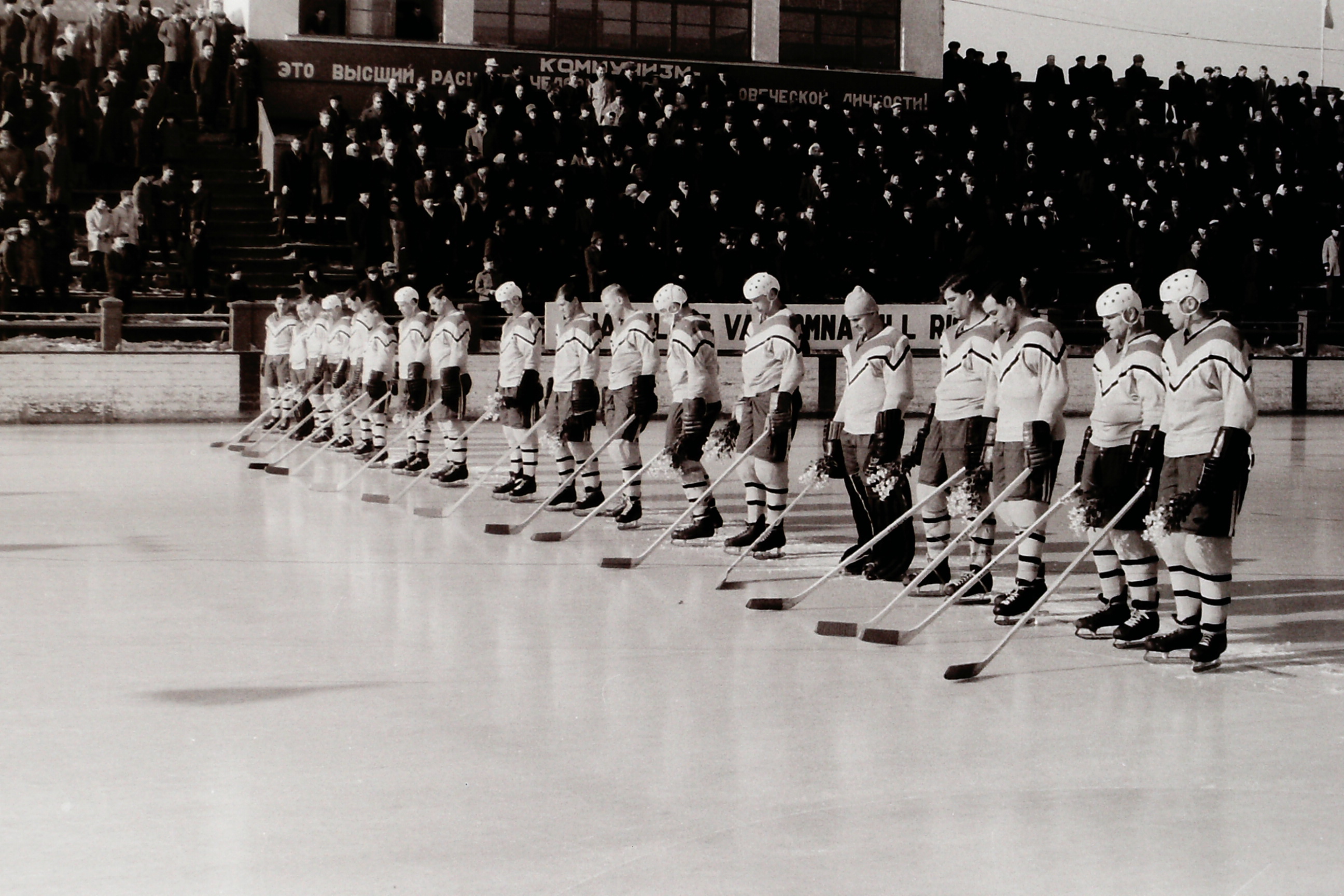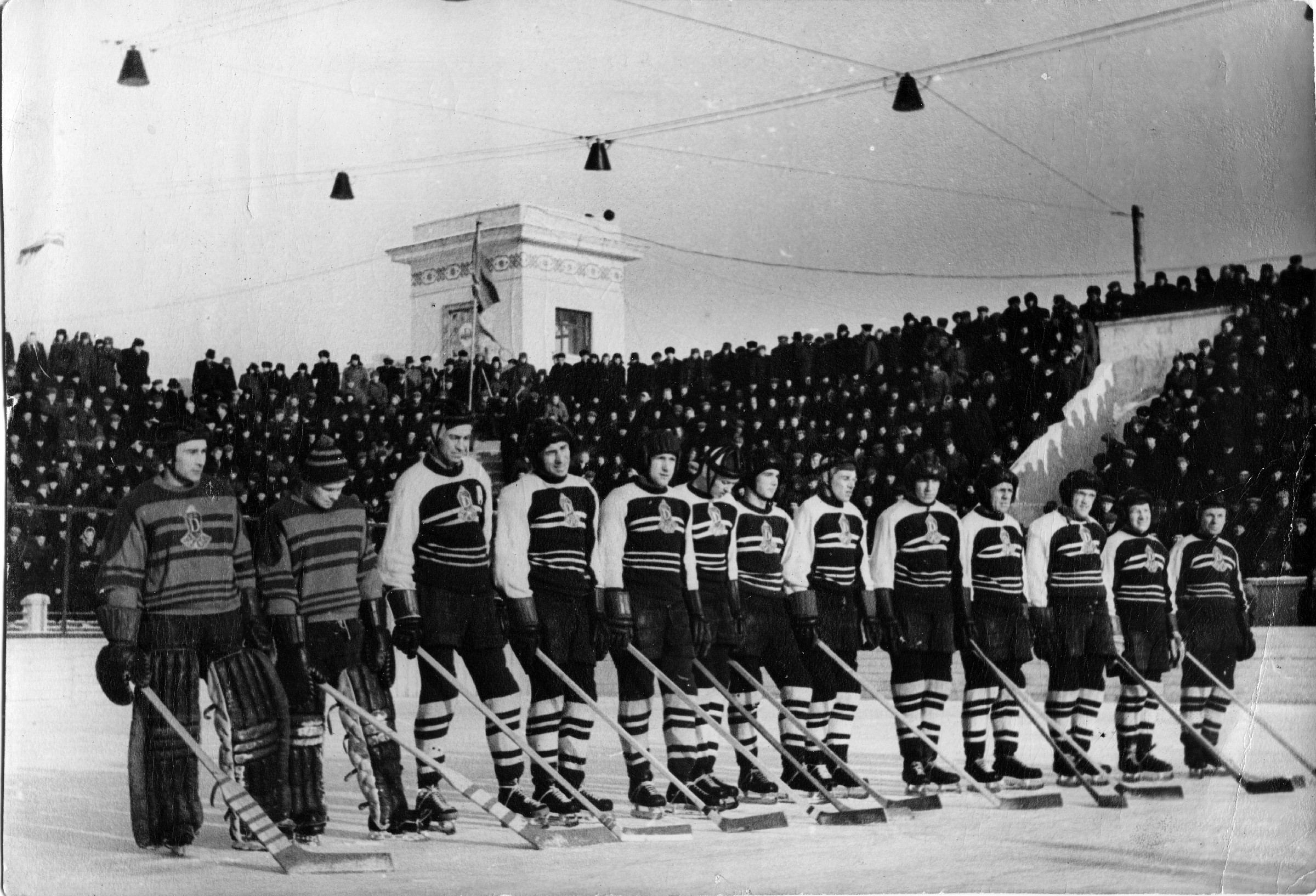 1951. gada janvārī Daugavas stadionā Rīgā tika atvērts pirmais stacionārais hokeja laukums (izmērs 63x33 m), kas bija izrakts 1,7 m dziļi zemē, un tam apkārt bija tribīnes 4 500 skatītājiem.