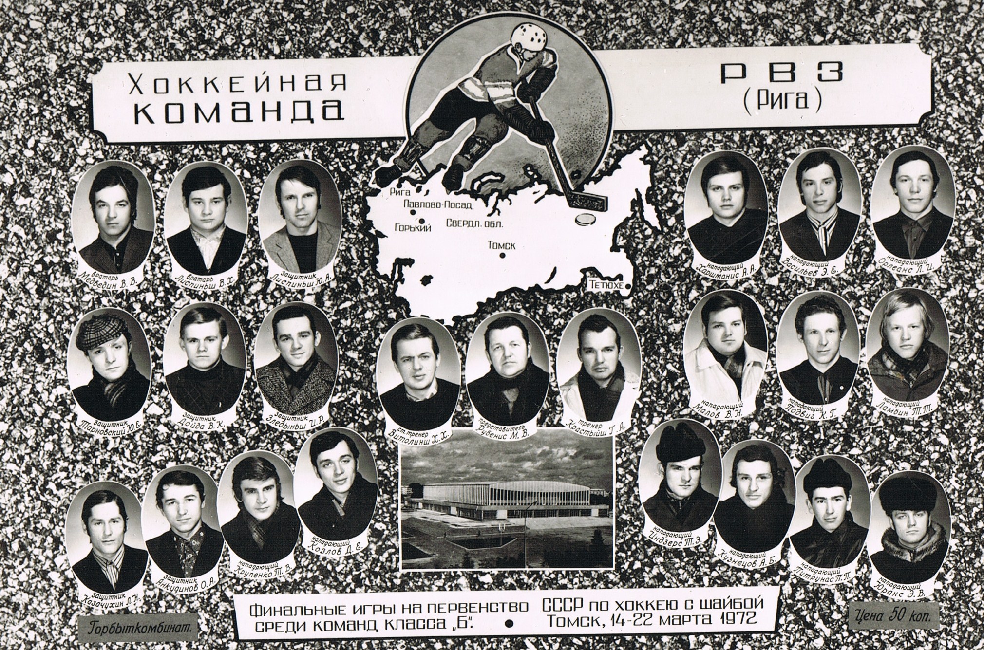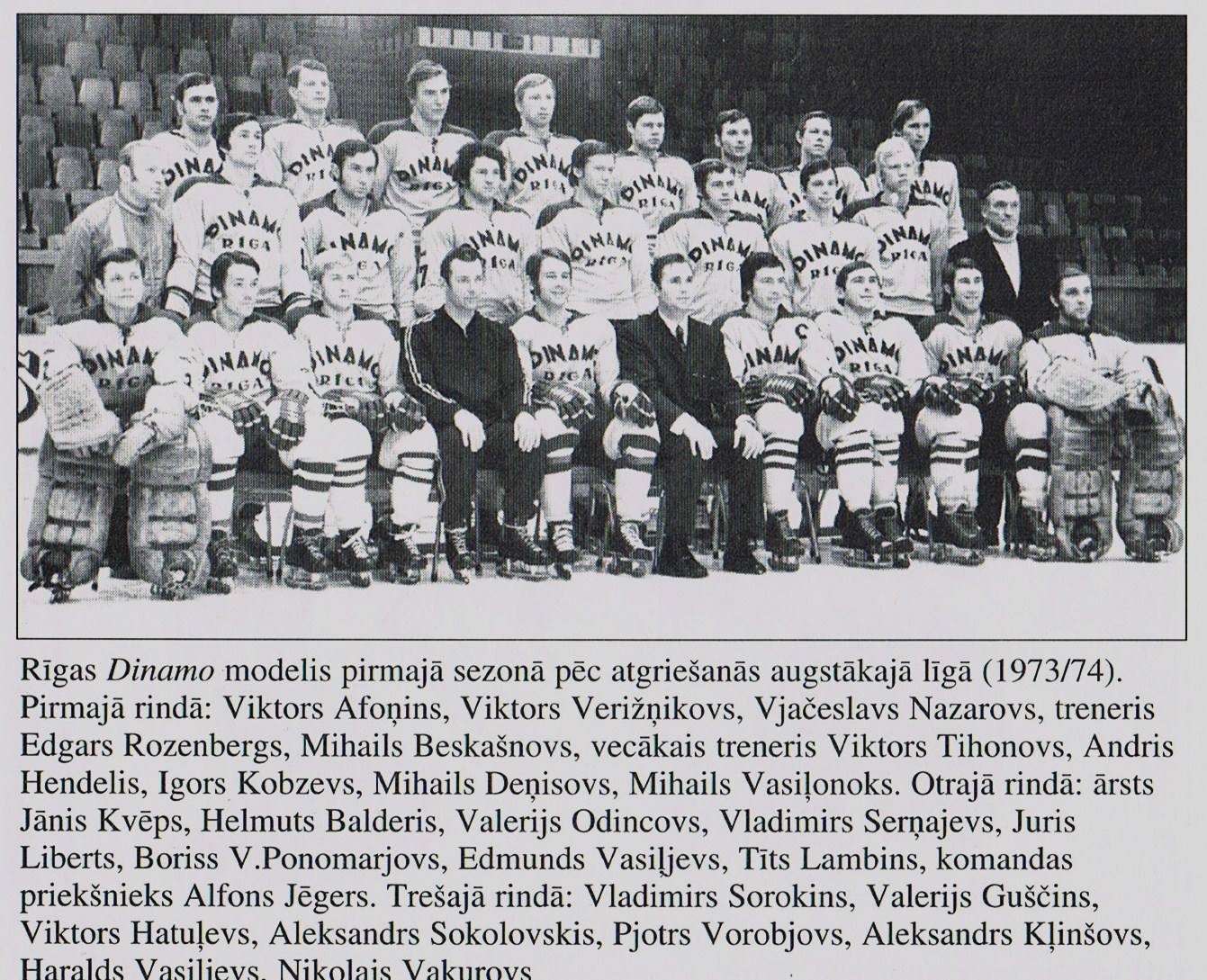 Sastāvs: vārtsargi V. Jerohins, V. Samoilovs, M. Vasiļonoks; aizsargi V. Avdejevs, L. Beresņevs, V. Durdins, A. Freimanis, K. Grigorjevs, M. Grundmanis, A. Kramskojs, V. Kuzņecovs, A. Maticins, A. Taboļins, S. Zinovjevs; uzbrucēji H. Balderis, A. Beļavskis, I. Brezgins, V. Dudins, A. Froļikovs, S. Gapejenko, V. Golovkovs, N. Karpinskis, A. Kerčs, V. Lubkins, S. Povečerovskis, P. Prirodins, J. Semerjaks, S. Skosirevs, J. Šipicins, M. Šostaks, V. Vauļins, S. Vovčeks, O. Znaroks.