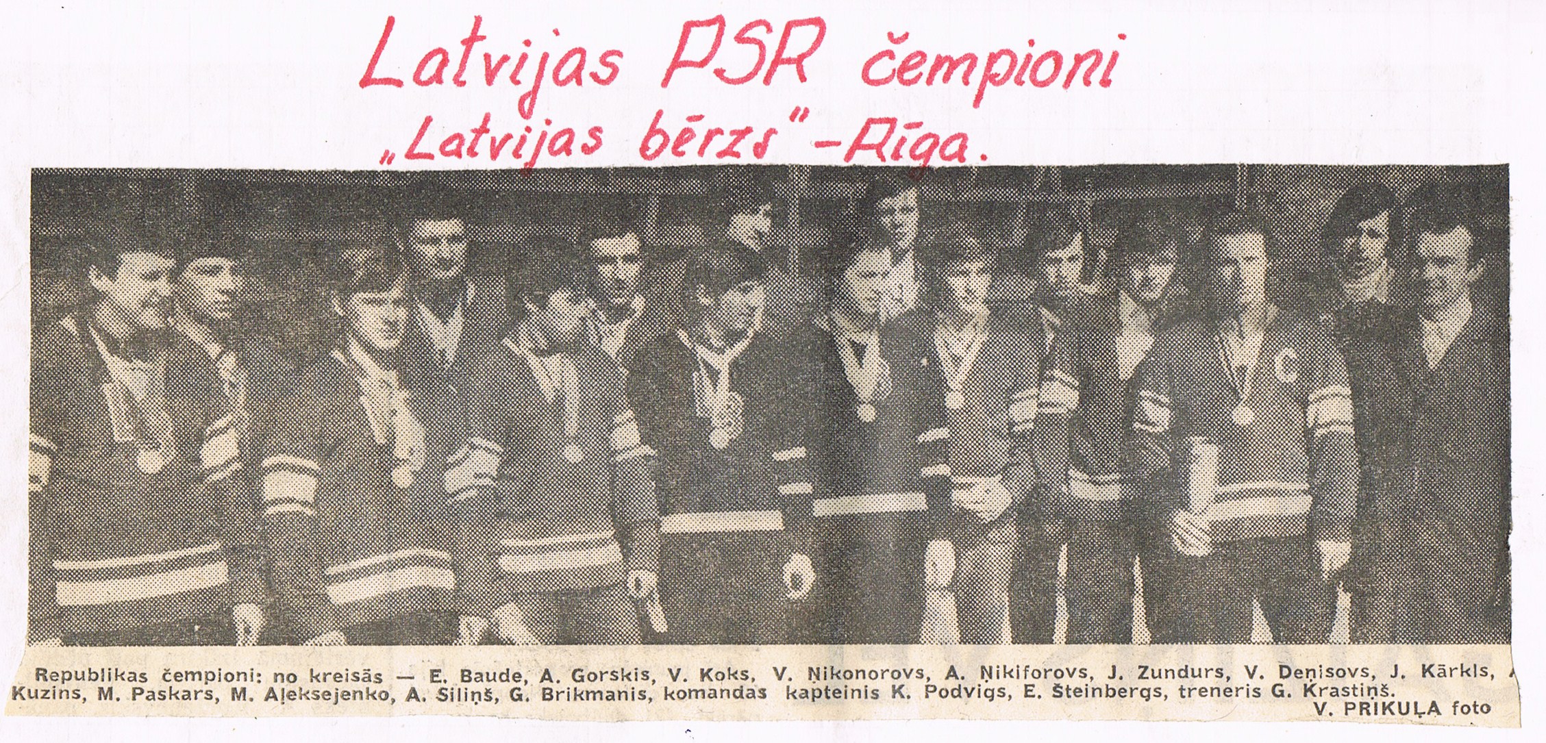 Sastāvs: vārtsargi E. Ozoliņš, I. Spundiņš; aizsargi N. Ķesteris, A. Niklass, H. Vītoliņš I, O. Zariņš; uzbrucēji E. Bauris (17 vārti), R. Buļzgis, M. Firsovs, A. Galkins, E. Klāvs, B. Polis, K. Ronis, G. Straupe, V. Šūlmanis (15 vārti).