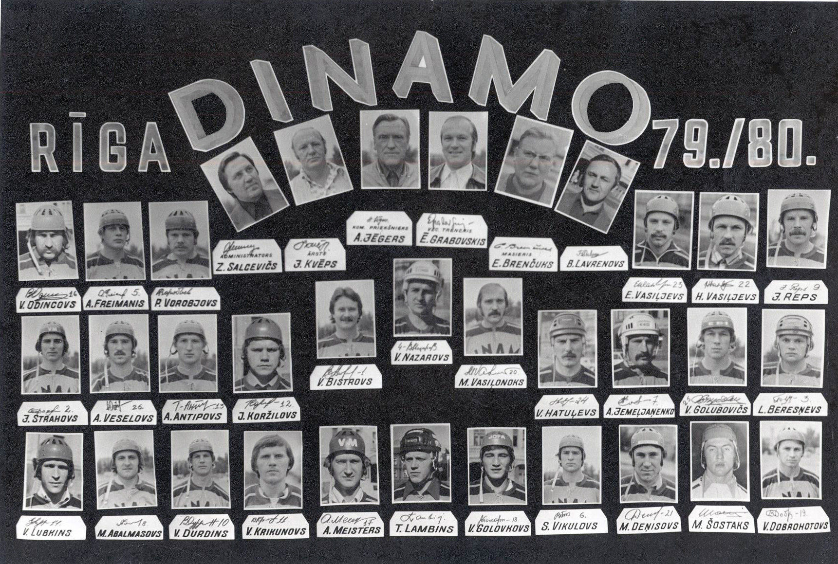 1979. gada 17. martā Rīgas DINAMO (g.t. Ē. Grabovskis) ar izcīnītu 6. vietu pabeidza PSRS čempionātu A klases Augstākajā līgā 4 apļu turnīrā (12 komandas). Starp 36 labākajiem čempionāta spēlētājiem tika nosaukti Rīgas DINAMO vārtsargs Vladimirs Bistrovs un aizsargs Vjačeslavs Nazarovs, kā arī Maskavas CSKA uzbrucējs Helmuts Balderis.