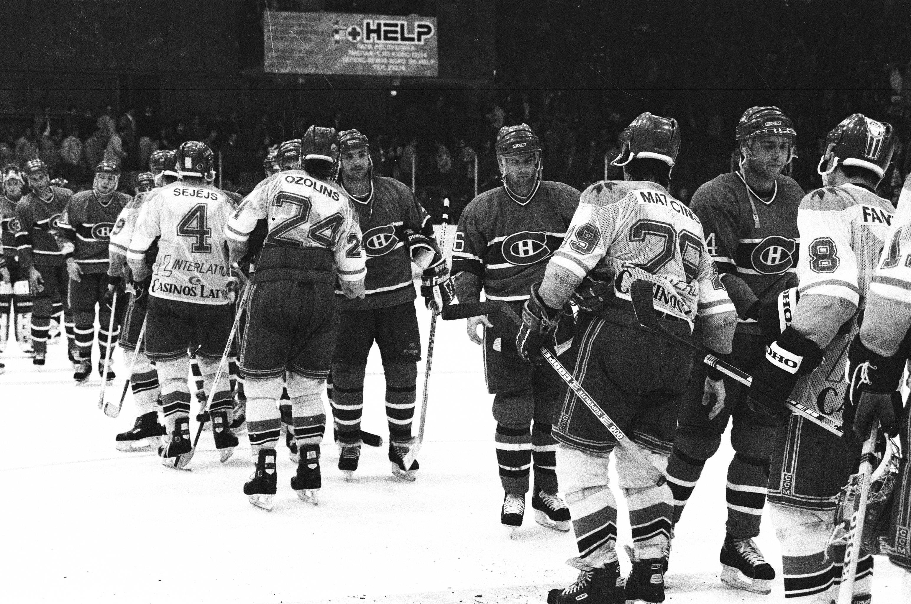 1990. gada 14. septembrī Rīgas Sporta pilī Rīgas DINAMO aizvadīja spēli pret NHL titulētāko klubu MONTREAL CANADIENS, un piedzīvojot zaudējumu ar 2:4 (mūsējo labā vārtus guva Sergejs Boldaveško un Oļegs Znaroks).